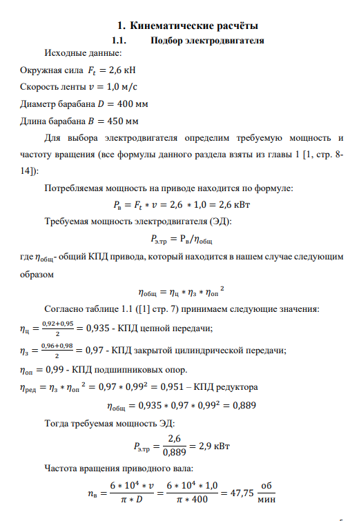 В рамках представленного курсового проекта была выполнена разработка привода ленточного транспортёра с одноступенчатым косозубым мотор-редуктором с внутренним зацеплением и цепной передачей от редуктора к приводному валу. Ленточный конвейер - транспортирующее устройство непрерывного действия с рабочим органом в виде ленты. Является одним из наиболее распространённых типов транспортирующих машин, его используют для перемещения как насыпных, так и штучных грузов. Применяется на промышленных производствах, в рудниках и шахтах, в сельском хозяйстве. Лента транспортёра приводится в движение посредством барабана, устанавливаемом на приводном валу, который в свою очередь вращается благодаря передаче крутящего момента от электродвигателя через одноступенчатый косозубый редуктор с внутренним зацеплением («соединение вал в вал») и цепную передачу, снабжённую предохранительной муфтой с целью предотвращения поломки деталей конструкции в случае перегрузки. В данной пояснительной записке приведены основные расчеты, выполненные для проектируемого привода. Графическая часть проекта представлена на 5 листах формата А1.
