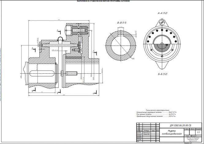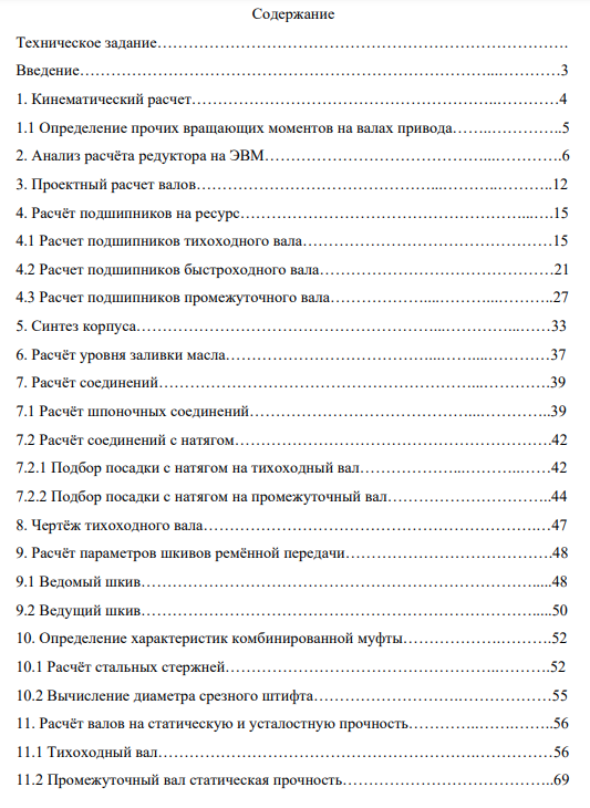 Целью курсового проекта являлось проектирование индивидуального привода с двухступенчатым цилиндрическим редуктором. Составными частями привода являются: электродвигатель, поликлиновая передача, двухступенчатый цилиндрический редуктор, выполненный по развёрнутой схеме, комбинированная муфта, сварная рама. Электропитание осуществляется от сети переменного 3-х фазного тока с частотой 50 Гц и напряжением 380 В. Расчетный ресурс 10000 часов при надежности подшипников качения 90%. Изготовление – серийное 1000 штук в год. Физический смысл работы механизма: вращающий момент посредством поликлиновой ремённой передачи передаётся с электродвигателя на входной вал редуктора; с выходного вала на муфту. Требовалось выполнить необходимые расчёты, выбрать наиболее оптимальные схемы и разработать конструкторскую документацию, требуемую для изготовления привода: • чертёж общего вида редуктора; • сборочный чертёж редуктора; • рабочие чертежи деталей редуктора; • сборочный чертёж комбинированной муфты; • чертёж общего вида индивидуального привода; • расчётно-пояснительную записку и спецификацию;