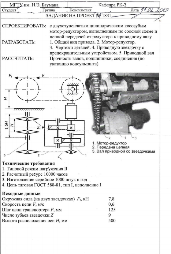 Для студентов МГТУ им. Н.Э.Баумана по предмету Детали машин (ДМ)ДМ 1831 - привод цепного транспортера с двухступенчатым цилиндрическим косозубым мотор-редуктором, выполненным по соосной схеме и цепной передачей от ДМ 1831 - привод цепного транспортера с двухступенчатым цилиндрическим косозубым мотор-редуктором, выполненным по соосной схеме и цепной передачей от