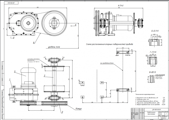ДМ 1831 - привод цепного транспортера с двухступенчатым цилиндрическим косозубым мотор-редуктором, выполненным по соосной схеме и цепной передачей от редуктора к приводному валу