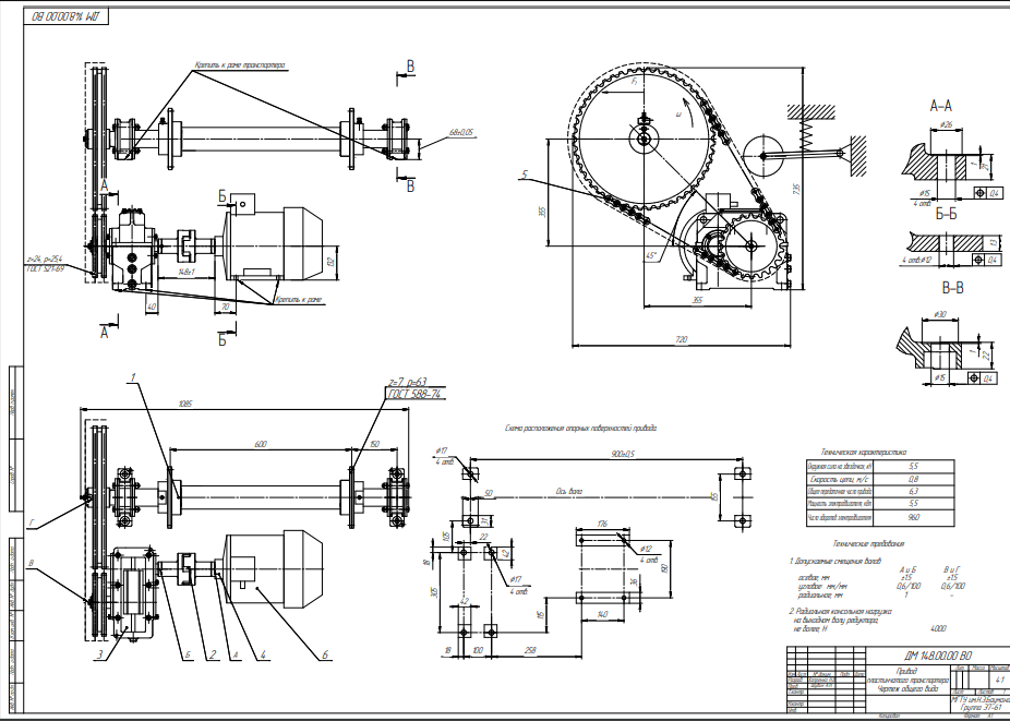 Для студентов МГТУ им. Н.Э.Баумана по предмету Детали машин (ДМ)ДМ 148 - привод цепного транспортераДМ 148 - привод цепного транспортера