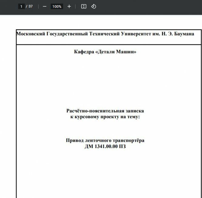 Расчётно-пояснительная записка к курсовому проекту на тему: Привод ленточного транспортёра ДМ 1341.00.00 ПЗ
