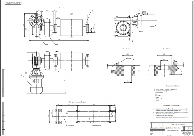 Для студентов МГТУ им. Н.Э.Баумана по предмету Детали машин (ДМ)ДМ 317 - Привод ленточного транспортера с червячным мотор-редуктором (верхнее расположение червяка)ДМ 317 - Привод ленточного транспортера с червячным мотор-редуктором (верхнее расположение червяка)