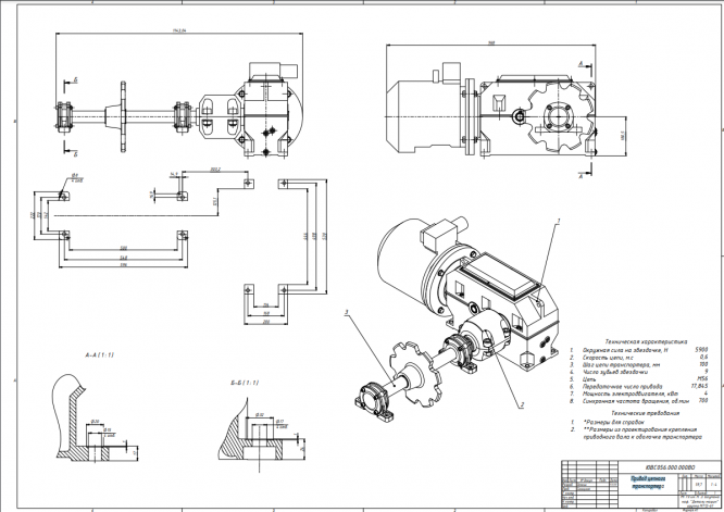 Для студентов МГТУ им. Н.Э.Баумана по предмету Детали машин (ДМ)ДМ № ЮВС 056 - Привод цепного траспортера, редуктор коническо-цилиндрическийДМ № ЮВС 056 - Привод цепного траспортера, редуктор коническо-цилиндрический