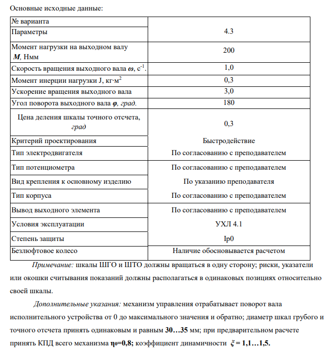 Техническое задание: разработать конструкцию механизма управления объектом по предложенной схеме в соответствии с заданным вариантом.