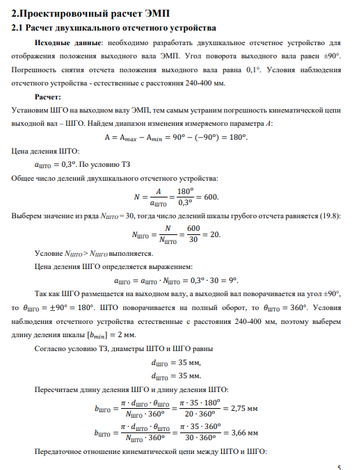 Исходные данные: необходимо разработать двухшкальное отсчетное устройство для отображения положения выходного вала ЭМП. Угол поворота выходного вала равен ±90°. Погрешность снятия отсчета положения выходного вала равна 0,1°. Условия наблюдения отсчетного устройства - естественные с расстояния 240-400 мм.