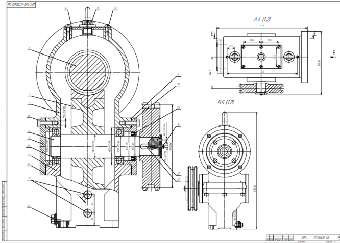 Для студентов МГТУ им. Н.Э.Баумана по предмету Детали машин (ДМ)ДМ 458 - Привод ленточного транспортера с червячным редуктором (верхнее расположение червяка), ременной передачей от электродвигателя к редуктору)ДМ 458 - Привод ленточного транспортера с червячным редуктором (верхнее расположение червяка), ременной передачей от электродвигателя к редуктору)