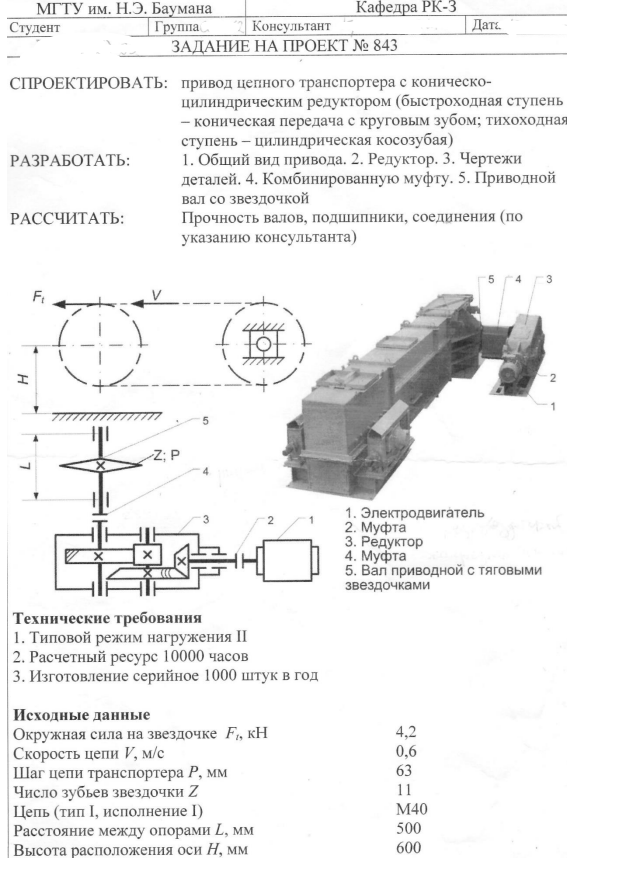 Главная » Учебные материалы » Детали машин (ДМ) » Курсовые работы » МГТУ им. Н.Э.Баумана » 6 семестр » Номер ДМ » Вариант 843 » ДМ 843 - Привод цепного транспортера с коническо-цилиндрическим редуктором