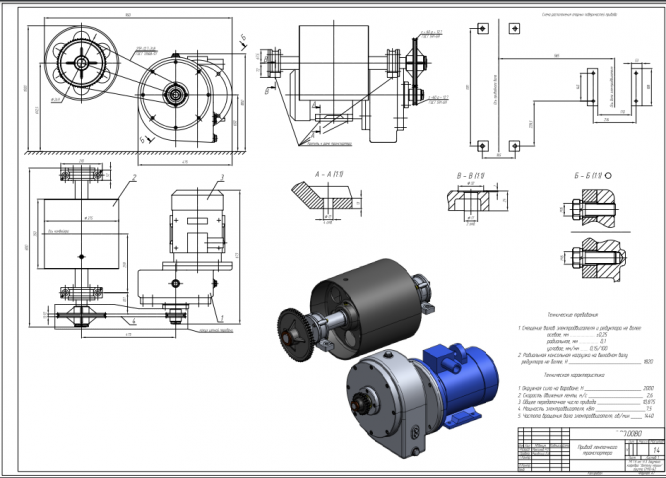 Курсовая работа ДМ: ДМ 75 - Привод ленточного конвейера, редуктор цилиндрический вариант 75
