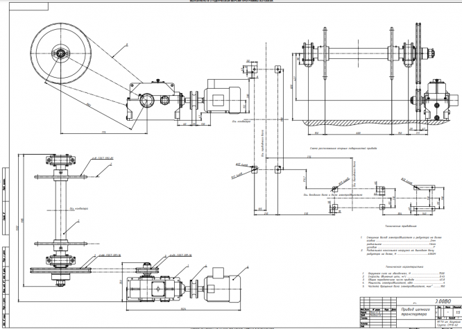Привод цепного транспортера, редуктор коническо-цилиндрический