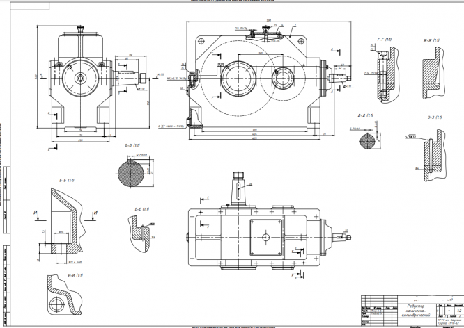 Для студентов МГТУ им. Н.Э.Баумана по предмету Детали машин (ДМ)ДМ 881 - Привод цепного транспортера, редуктор коническо-цилиндрическийДМ 881 - Привод цепного транспортера, редуктор коническо-цилиндрический