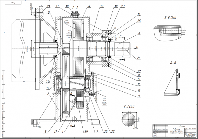 - сборочный чертеж цилиндрического косозубого вертикального моторредуктора;