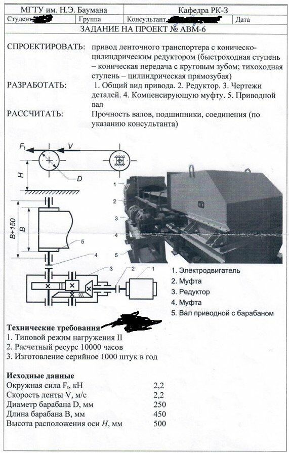 Для студентов МГТУ им. Н.Э.Баумана по предмету Детали машин (ДМ)Проектирование привода ленточного транспортёра с коническо-цилиндрическим редукторомПроектирование привода ленточного транспортёра с коническо-цилиндрическим редуктором