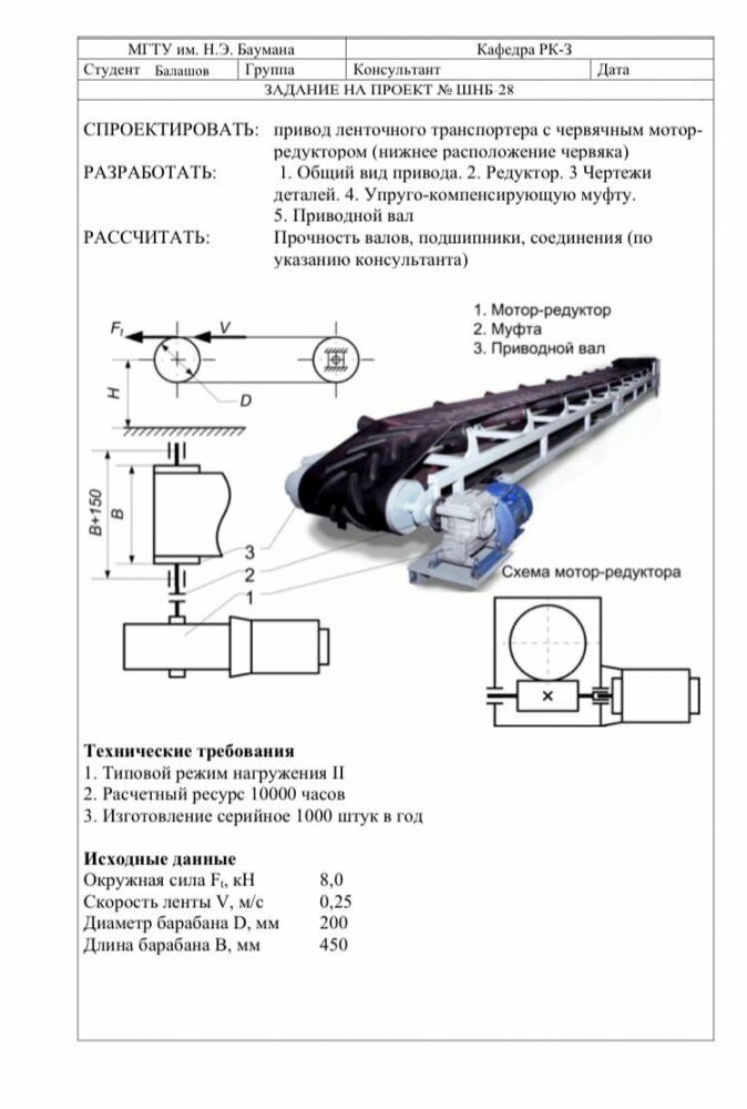 Для студентов МГТУ им. Н.Э.Баумана по предмету Детали машин (ДМ)Привод ленточного транспортераПривод ленточного транспортера