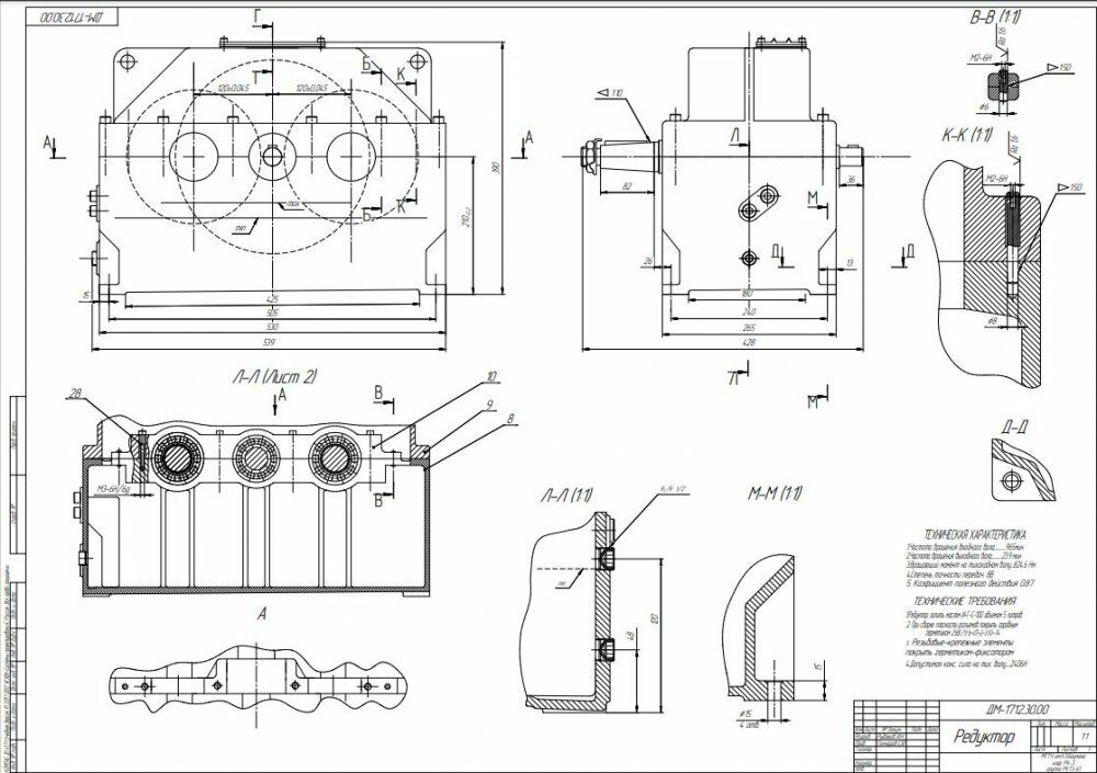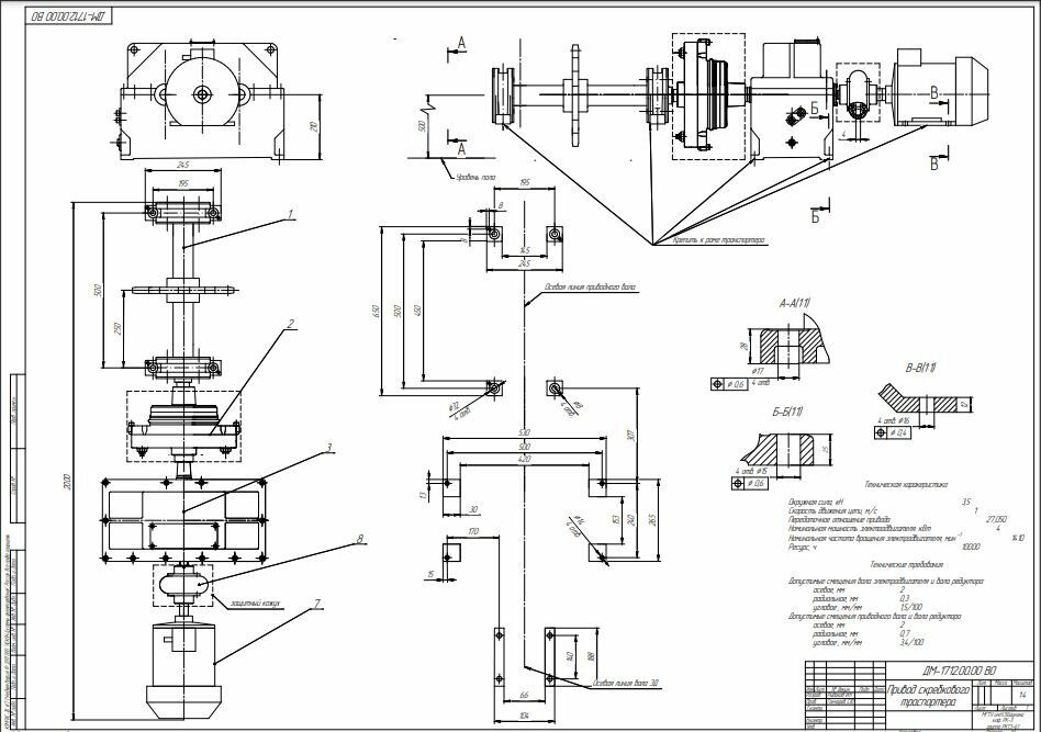 Для студентов МГТУ им. Н.Э.Баумана по предмету Детали машин (ДМ)ДМ 1712 - Привод ленточного транспортера с двухпоточным соосным косозубым редукторомДМ 1712 - Привод ленточного транспортера с двухпоточным соосным косозубым редуктором