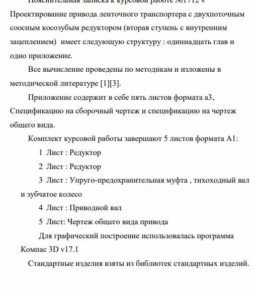 Проектирование привода ленточного транспортера с двухпоточным соосным косозубым редуктором (вторая ступень с внутренним зацеплением) имеет следующую структуру : одиннадцать глав и одно приложение.
