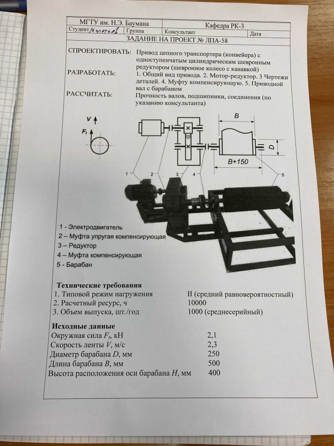 Для студентов МГТУ им. Н.Э.Баумана по предмету Детали машин (ДМ)Курсач одноступенчатый шевронный редуктор.Курсач одноступенчатый шевронный редуктор.