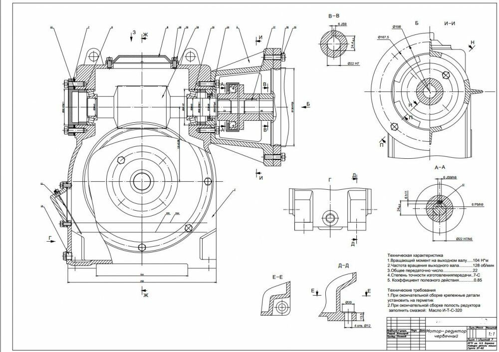 Для студентов МГТУ им. Н.Э.Баумана по предмету Детали машин (ДМ)ДМ ПСА 24 - Привод цепного транспортера с червячным мотор-редукторомДМ ПСА 24 - Привод цепного транспортера с червячным мотор-редуктором