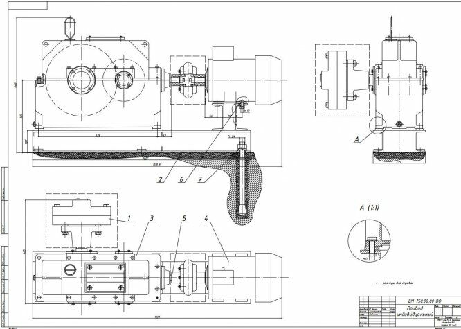 Для студентов МГТУ им. Н.Э.Баумана по предмету Детали машин (ДМ)ДМ 750 - Привод индивидуальный с коническо-цилиндрическим редукторомДМ 750 - Привод индивидуальный с коническо-цилиндрическим редуктором