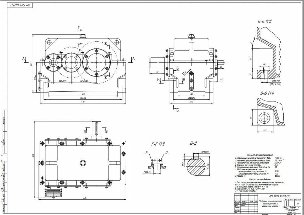 Для студентов МГТУ им. Н.Э.Баумана по предмету Детали машин (ДМ)ДМ 1593 - Привод ленточного конвейера, цилиндрический двухступпенчатый редукторДМ 1593 - Привод ленточного конвейера, цилиндрический двухступпенчатый редуктор