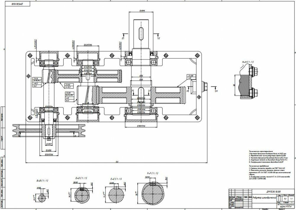 Для студентов МГТУ им. Н.Э.Баумана по предмету Детали машин (ДМ)Редуктор цилиндрическийРедуктор цилиндрический