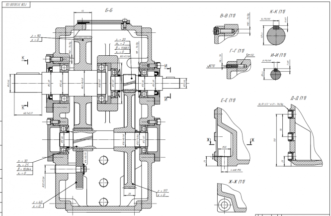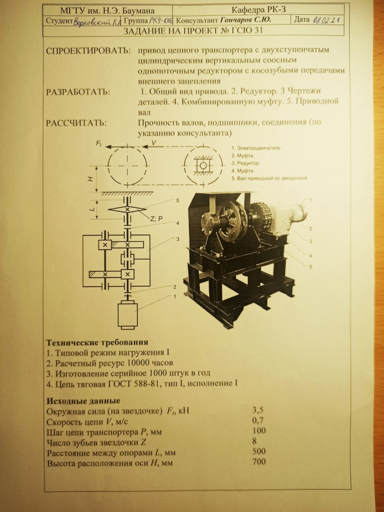 Для студентов МГТУ им. Н.Э.Баумана по предмету Детали машин (ДМ)Курсовик 31 с вертикальным соосным двухступенчатым редуктором, приводным валом и комбинированной муфтойКурсовик 31 с вертикальным соосным двухступенчатым редуктором, приводным валом и комбинированной муфтой