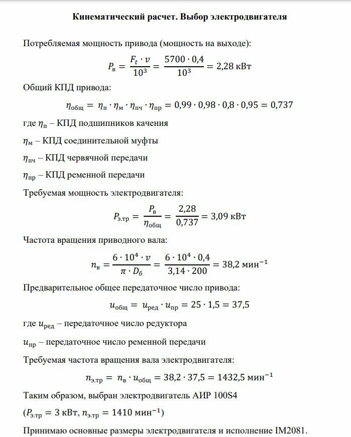 Пояснительная записка содержит 48 страниц машинописного текста, 7 рисунков, 5 таблиц. Пояснительная записка содержит расчеты и проектирование механизмов привода ленточного транспортера: червячного редуктора (с нижним расположением червяка) и ременной передачей от электродвигателя к редуктору, упруго-компенсирующей муфты со стальными стержнями, приводного вала, расчет подшипников на ресурс, расчет вала-червяка на прочность и усталость.