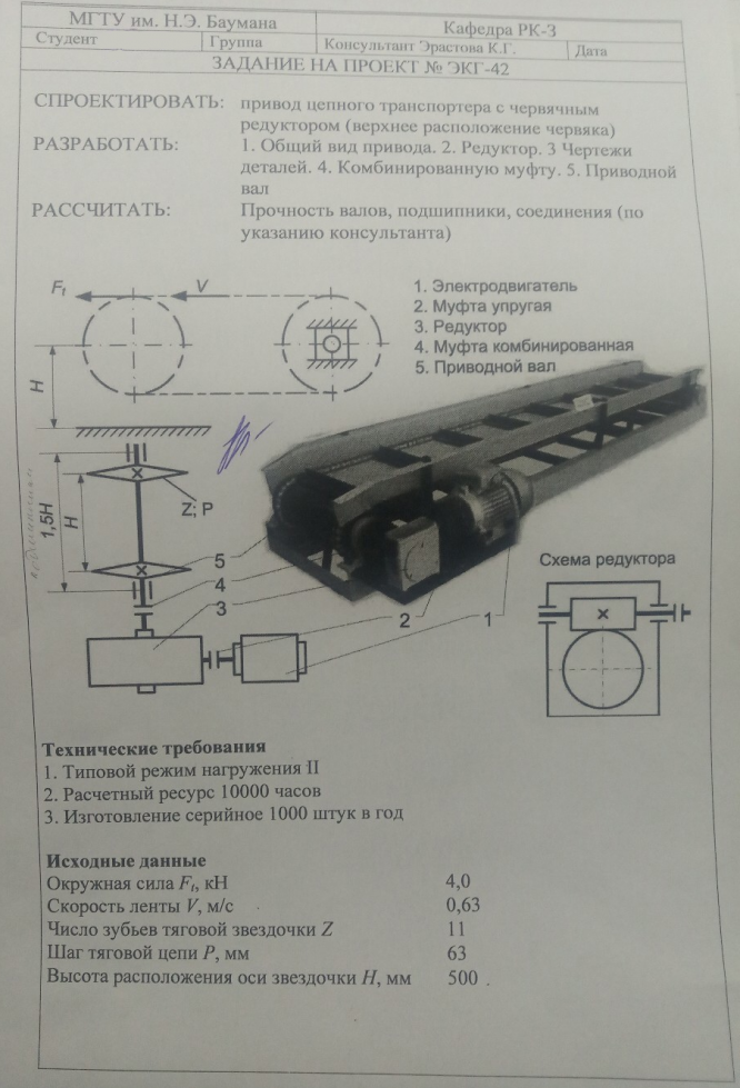 Курсовая работа ЭКГ-42: ЭКГ-42 Привод цепного транспортера с червячным редуктором (верхнее расположение червяка)
