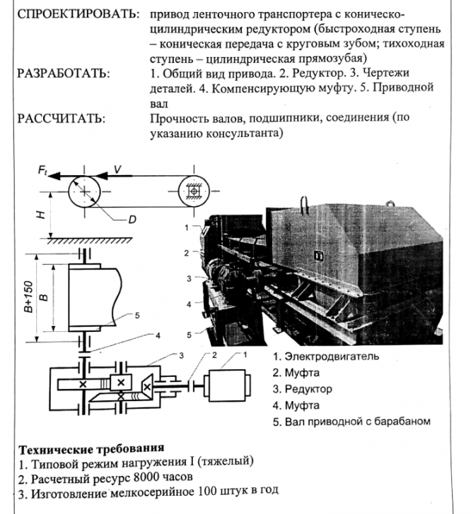 Для студентов МГТУ им. Н.Э.Баумана по предмету Детали машин (ДМ)Вариант ДМ 713, РПЗ и листы. Привод ленточного транспортера с коническо-цилиндрическим редуктором (быстроходная ступень - коническая передача с круговВариант ДМ 713, РПЗ и листы. Привод ленточного транспортера с коническо-цилиндрическим редуктором (быстроходная ступень - коническая передача с кругов