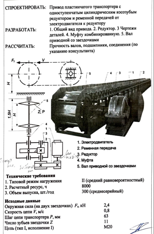 Для студентов МГТУ им. Н.Э.Баумана по предмету Детали машин (ДМ)Привод пластинчатого транспортёра с одноступенчатым цилиндрическим редуктором и ременной передачей.Привод пластинчатого транспортёра с одноступенчатым цилиндрическим редуктором и ременной передачей.