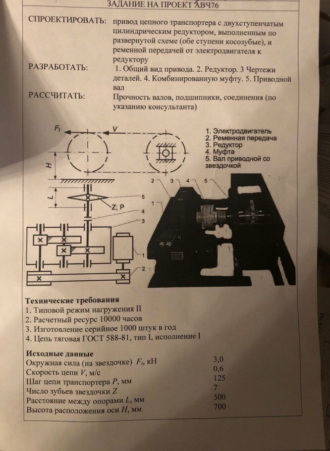 Курсовая работа АВЧ: ДМ АВЧ76 Привод цепного транспортера с двухступенчатым цилиндрическим редуктором выполненным по развернутой схеме