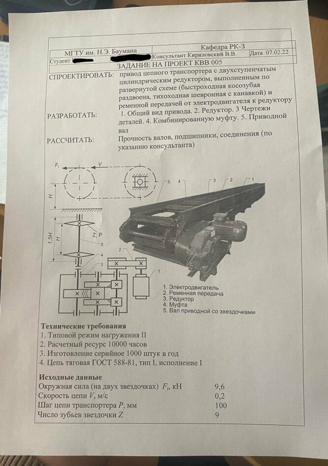 Для студентов МГТУ им. Н.Э.Баумана по предмету Детали машин (ДМ)Привод цепного транспортёра с двухступенчатым цилиндрическим редуктором, выполненным по развёрнутой схеме (быстроходная косозубая раздвоена, тихоходнаПривод цепного транспортёра с двухступенчатым цилиндрическим редуктором, выполненным по развёрнутой схеме (быстроходная косозубая раздвоена, тихоходна