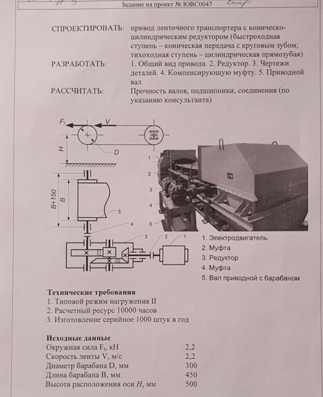 Для студентов МГТУ им. Н.Э.Баумана по предмету Детали машин (ДМ)Привод ленточного транспортёра с конусно-цилиндрическим редуктором 0047Привод ленточного транспортёра с конусно-цилиндрическим редуктором 0047