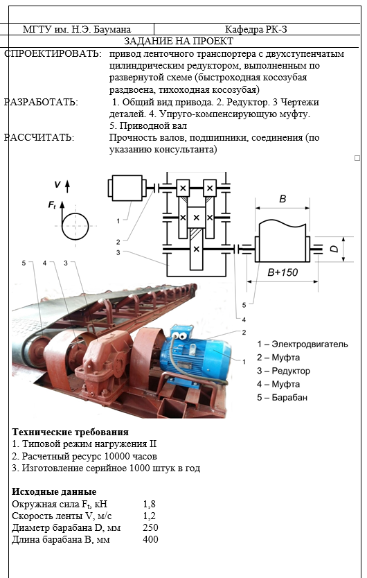 Для студентов МГТУ им. Н.Э.Баумана по предмету Детали машин (ДМ)Привод ленточного транспортера с двухступенчатым цилиндрическим ВЕРТИКАЛЬНЫМ редуктором, выполненным по развернутой схеме (быстроходная косозубая раздПривод ленточного транспортера с двухступенчатым цилиндрическим ВЕРТИКАЛЬНЫМ редуктором, выполненным по развернутой схеме (быстроходная косозубая разд