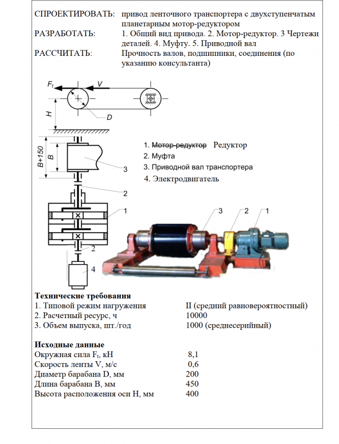 Для студентов МГТУ им. Н.Э.Баумана по предмету Детали машин (ДМ)Привод ленточного транспортера с двухступенчатым планетарным редукторомПривод ленточного транспортера с двухступенчатым планетарным редуктором