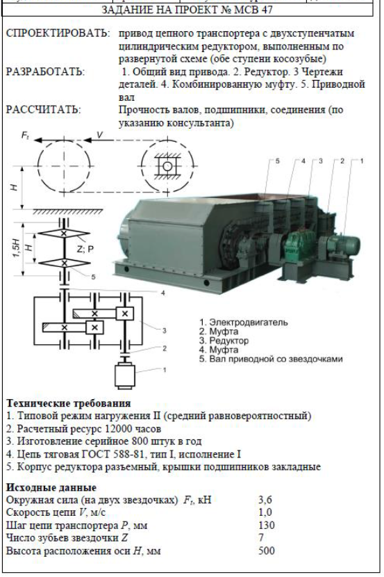 Курсовая работа МСВ: привод цепного транспортера вариант 47