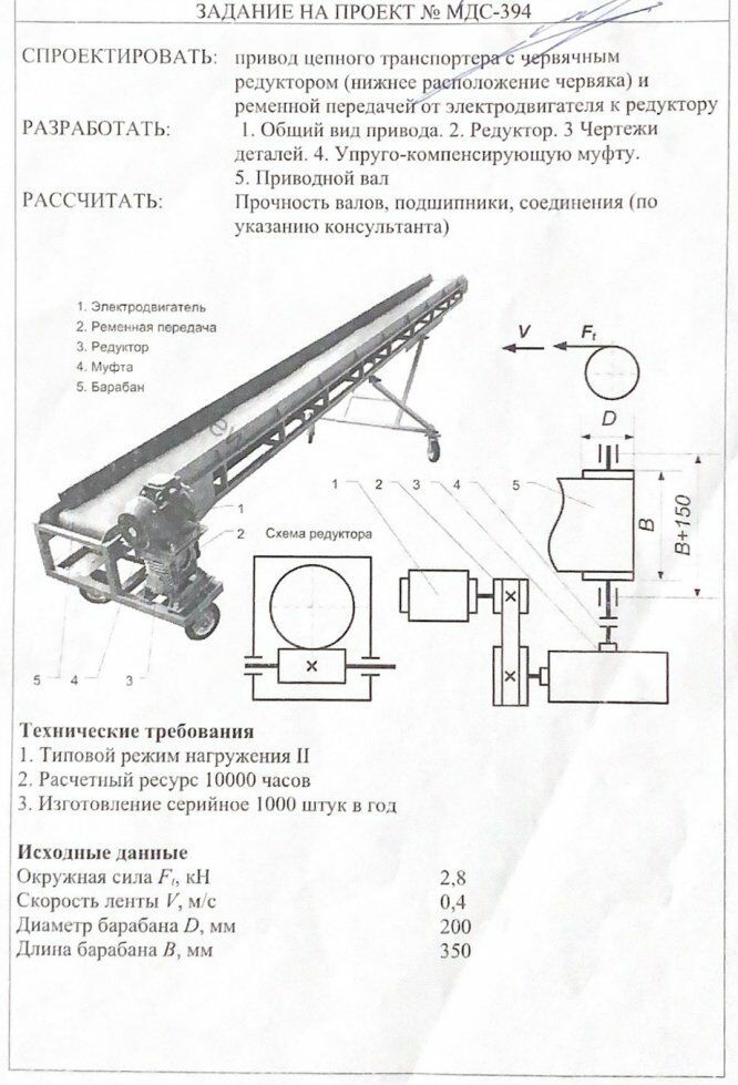 Для студентов МГТУ им. Н.Э.Баумана по предмету Детали машин (ДМ)Привод ленточного транспортера с червячным редуктором (нижнее расположение червяка) и ременной передачей от электродвигателя к редуктору.Привод ленточного транспортера с червячным редуктором (нижнее расположение червяка) и ременной передачей от электродвигателя к редуктору.