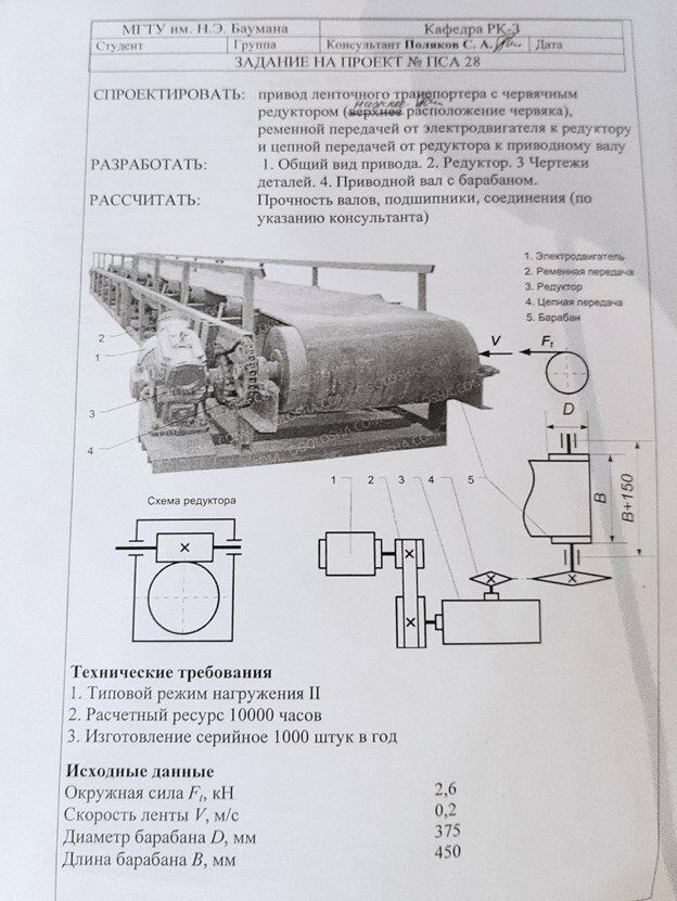 Главная » Учебные материалы » Детали машин (ДМ) » Курсовые работы » МГТУ им. Н.Э.Баумана » 6 семестр » Номер ДМ28 » Курсовой проект. Привод ленточного транспортера с цилиндрическим червячным редуктором.