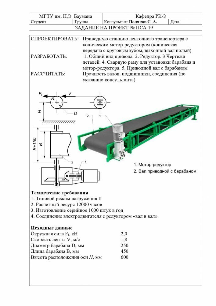 Курсовая работа ПСА 19: Курсовой проект. Привод ленточного транспортера с коническим мотор-редуктором.