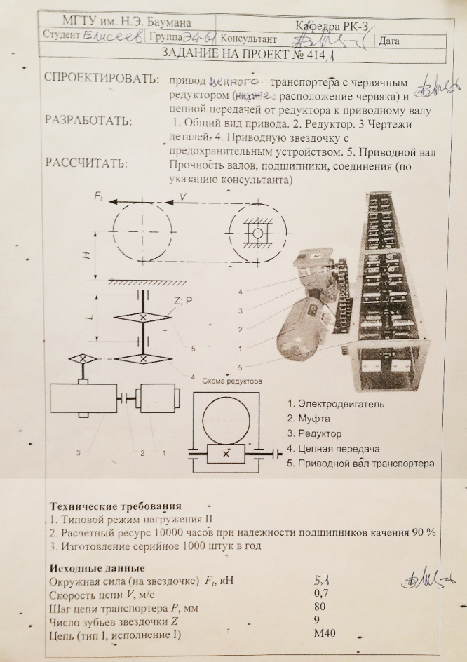 Главная » Учебные материалы » Детали машин (ДМ) » Курсовые работы » МГТУ им. Н.Э.Баумана » 6 семестр » Номер ДМ 414 » Привод цепного транспортера с червячным редуктором.