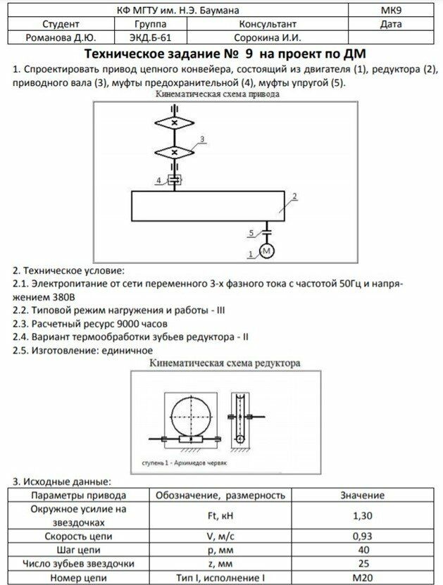 Главная » Учебные материалы » Детали машин (ДМ) » Курсовые работы » МГТУ им. Н.Э.Баумана » 6 семестр » Номер ДМ 09 » Курсовой проект. Привод цепного конвейера с червячным редуктором.