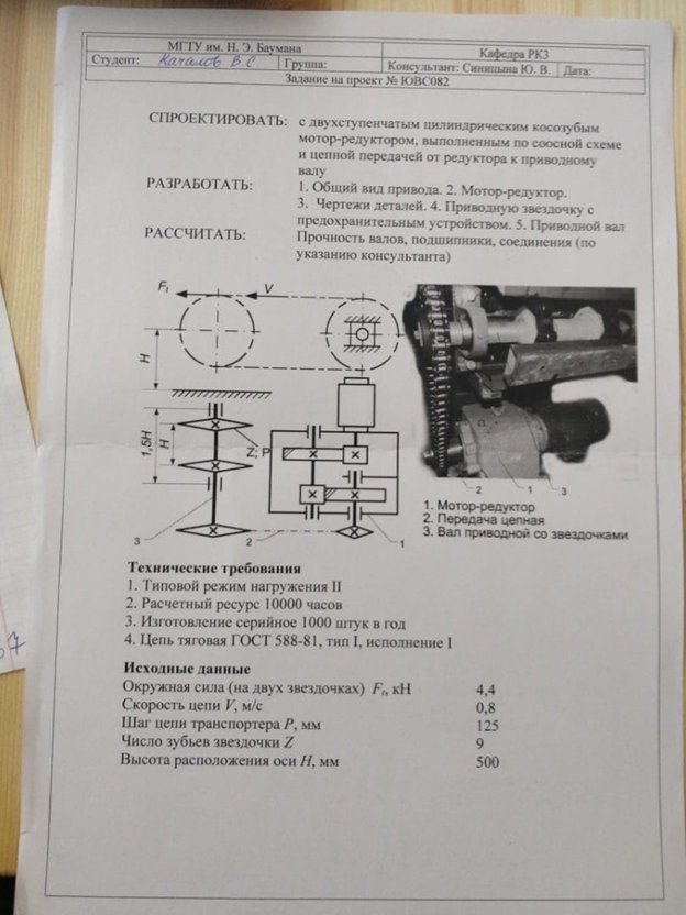 Главная » Учебные материалы » Детали машин (ДМ) » Курсовые работы » МГТУ им. Н.Э.Баумана » 6 семестр » Номер ЮВС082 » Привод пластинчатого транспортера с цепной передачей и двухступенчатым мотор-редуктором