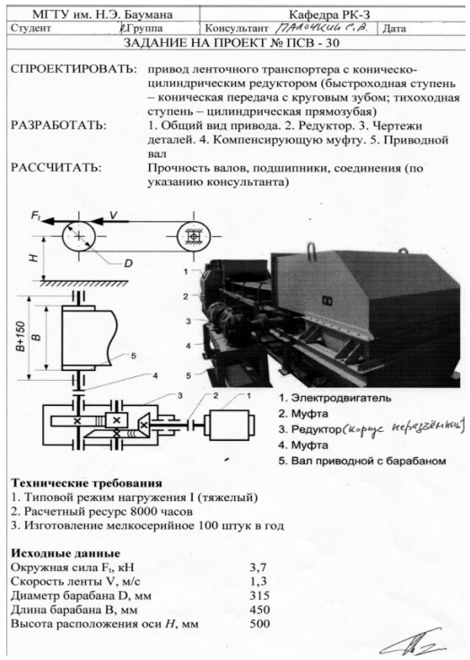 Главная » Учебные материалы » Детали машин (ДМ) » Курсовые работы » МГТУ им. Н.Э.Баумана » 6 семестр » Номер ПСВ » Вариант 30 » Проектирование привода ленточного транспортера с коническо-цилиндрическим редуктором