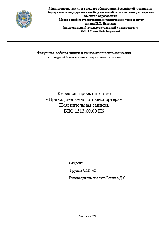 Курсовая работа БДС: Привод ленточного транспортера БДС 1313 вариант 1313