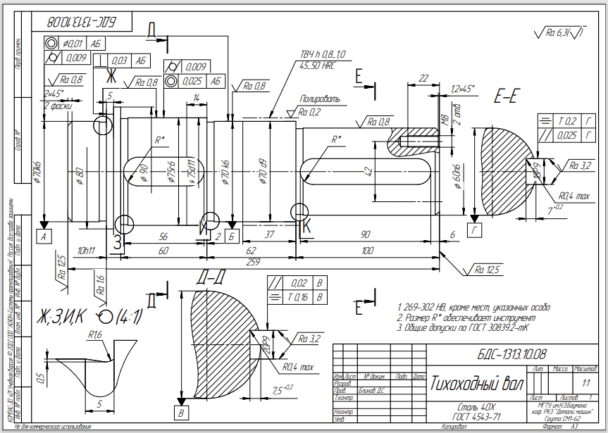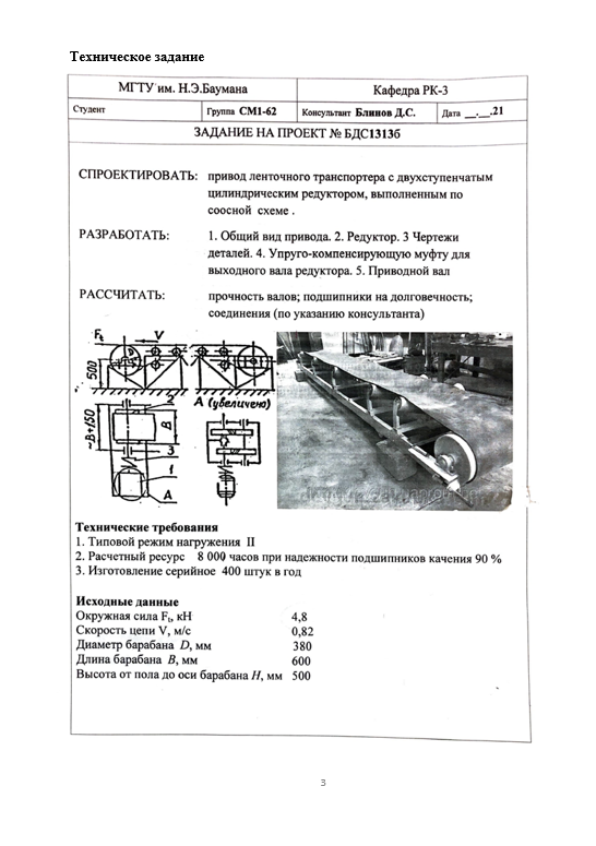 Для студентов МГТУ им. Н.Э.Баумана по предмету Детали машин (ДМ)Привод ленточного транспортера БДС 1313Привод ленточного транспортера БДС 1313
