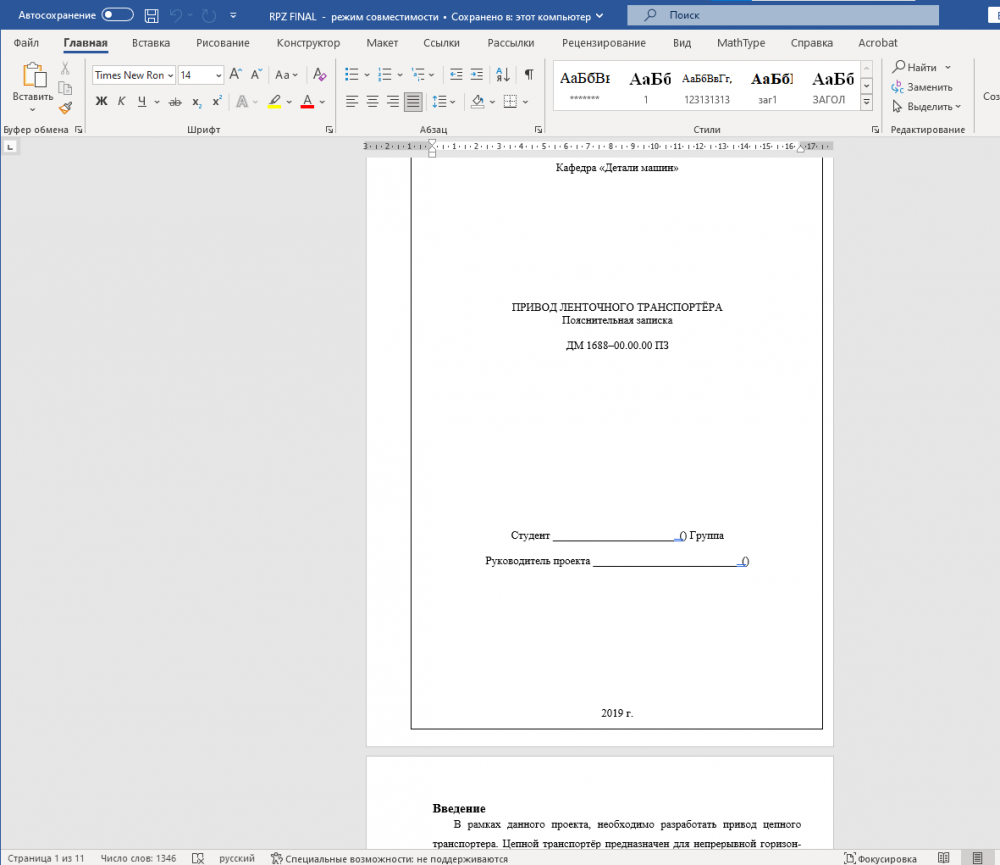 Характеристики курсовой работы