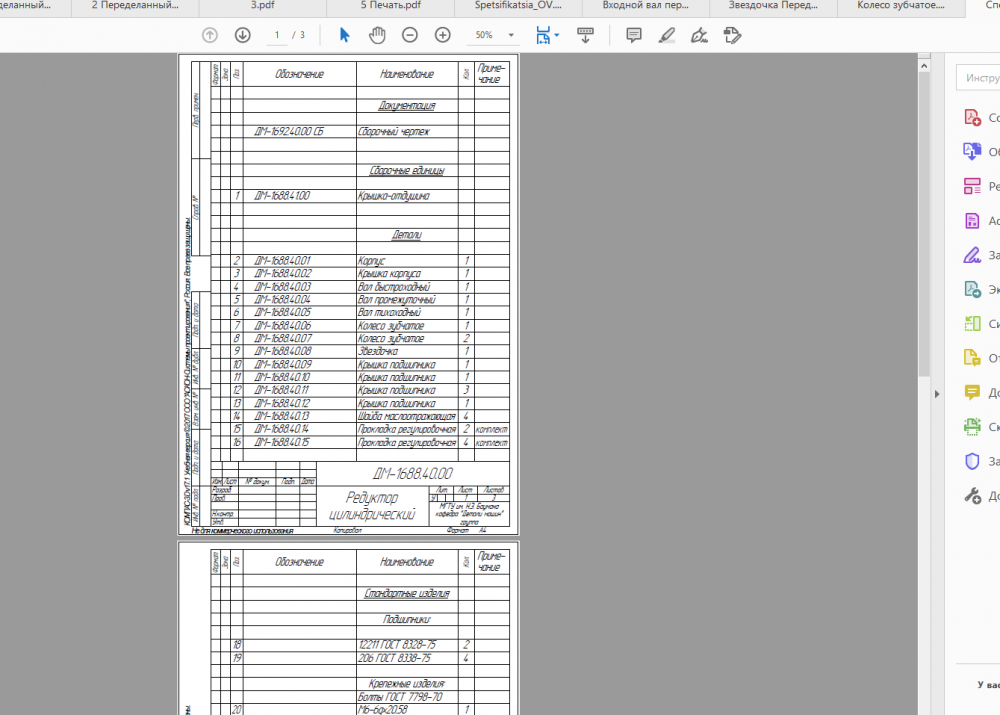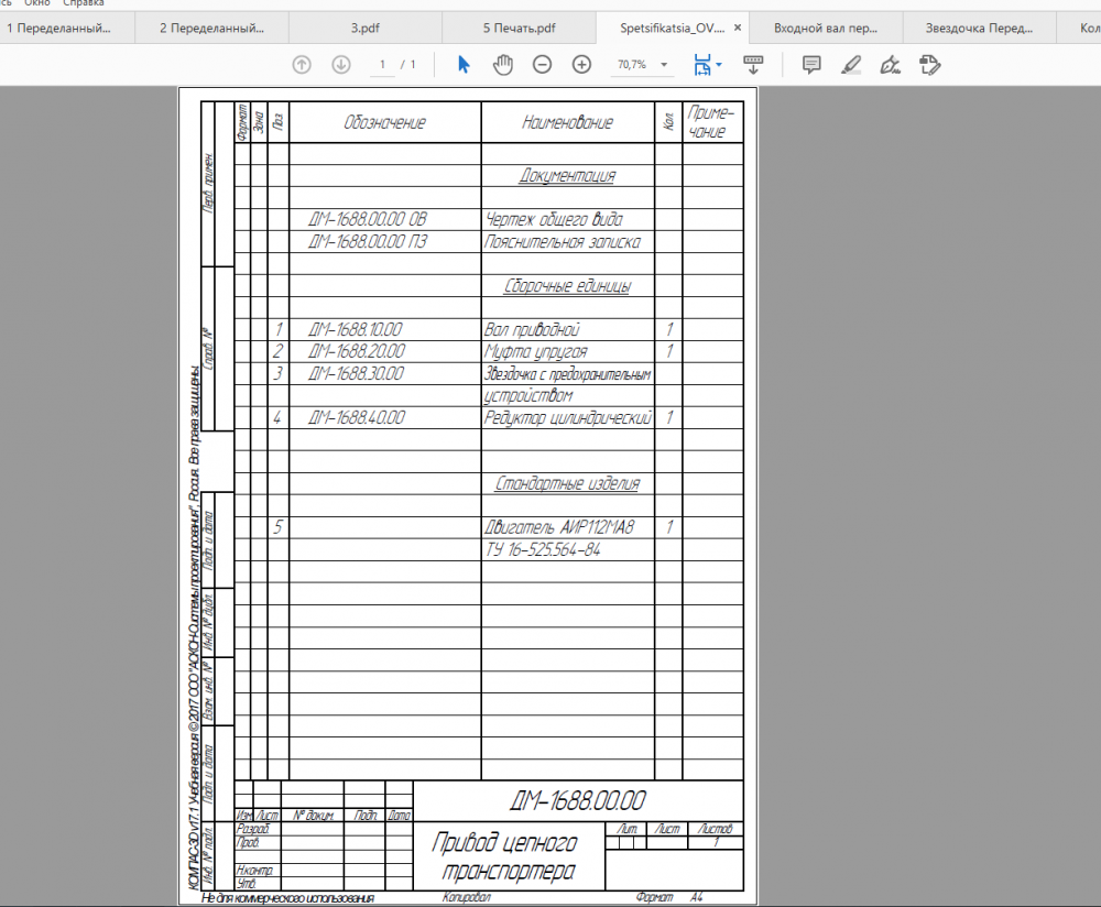 Привод ленточного транспортера Редуктор цилиндрический ДМ 1688.00.00 \"Привод ленточного транспортера - Редуктор цилиндрический\" - ДМ-1688 .00.00 исходники чертежей и их пдф , БЕЗ РПЗ, но есть кое какие расчеты маткад и примерная РПЗ, но неполная Введение В рамках данного проекта, необходимо разработать привод цепного транспортера. Цепной транспортёр предназначен для непрерывной горизонтальной транспортировки штучных грузов. Движение цепи осуществляется с помощью тяговой звездочки, установленной на приводном валу. Передача вращения на него осуществляется посредством цилиндрического двухступенчатого редуктора, выполненного по развернутой схеме (быстроходная ступень косозубая, тихоходная – косозубая раздвоенная) и цепной передачи.