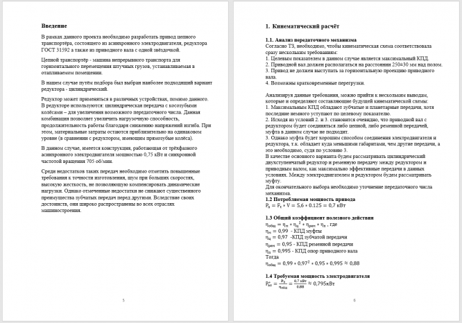 Пояснительная записка к курсовой работе МИВ.2А009.00.00 «Проектирование привода цепного транспортера» имеет следующую структуру: восемь расчетных глав.