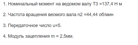 При выполнении задания необходимо определить крутящие моменты, действующие на валах, допускаемое контактное напряжение и выполнить расчёт геометрических параметров цилиндрической прямозубой передачи. Вычертить в масштабе зубчатое колесо. Данные д