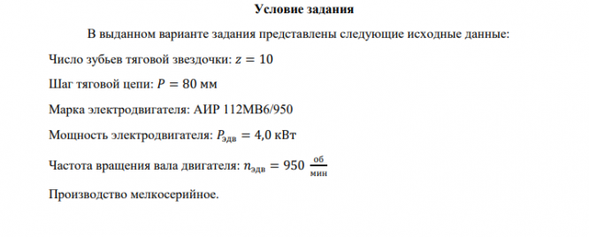 http://schema.org/Product">Необходимо на основе исходных данных спроектировать привод цепного транспортера с одноступенчатым цилиндрическим редуктором (прямозубый, внутреннего зацепления), сделать чертеж общего вида привода, отдельных узлов привода (редуктор, звёздочка цепной передачи, приводной вал) и деталей редуктора (валы, зубчатые колеса).